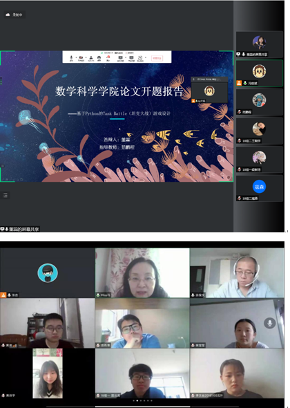 为了保证线上开题答辩的顺利进行,每个答辩小组在答辩开始之前都单独进行了设备调试和演示。在答辩过程中,学生们采用屏幕分享PPT的方式,从毕业论文选题背景、研究意义、研究内容、研究思路、研究方法、论文框架以及进度安排等方面进行了认真陈述。答辩小组老师根据每一位学生的开题汇报,重点指出选题、研究内容和方法中存在的主要问题并提出了修改意见或建议,同时对毕业论文的格式、结构提出了规范化要求。