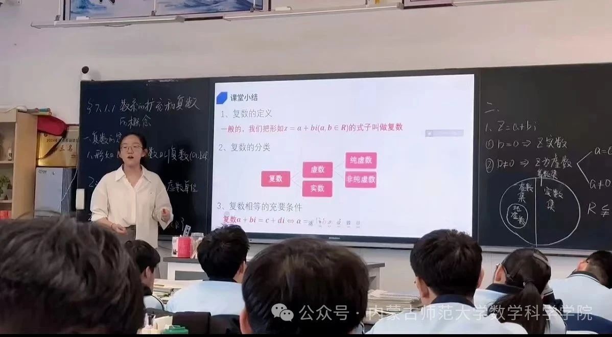 独立讲授《数系的扩充与复数的概念》,知识看起来简单,我却压力山大!如何让抽象的“虚数单位 i”被理解?备课成了“攻坚战”:查资料、磨教案、和我一起实习的同学做我的学生,在空教室反复演练,给我鼓励与适当的建议,最后终于找到清晰的讲课思路与衔接方式。站上讲台,心跳加速。引导着大家从熟悉的实数,走进“数不够用”的困境,进而引出一节课的重点内容……这次讲课对我来说是心态上的突破,我不再站上讲台就瑟瑟发抖,而是积极学习其他老师讲课时的优点,弥补自己的不足,在讲台上逐渐自信。