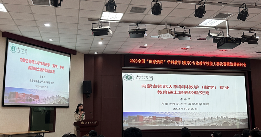 决赛结束后,李春兰教授受邀,在2023年全国“田家炳杯”学科教学(数学)专业教学技能大赛决赛暨培养研讨会上分享了我院教育硕士培养的经验,与在场各校专家学者进行深入交流。