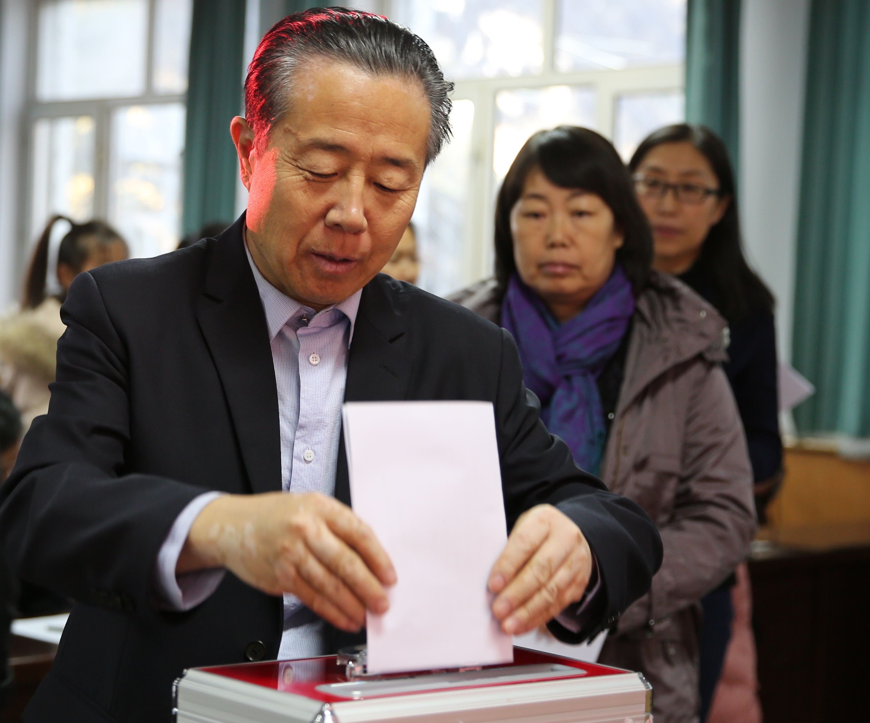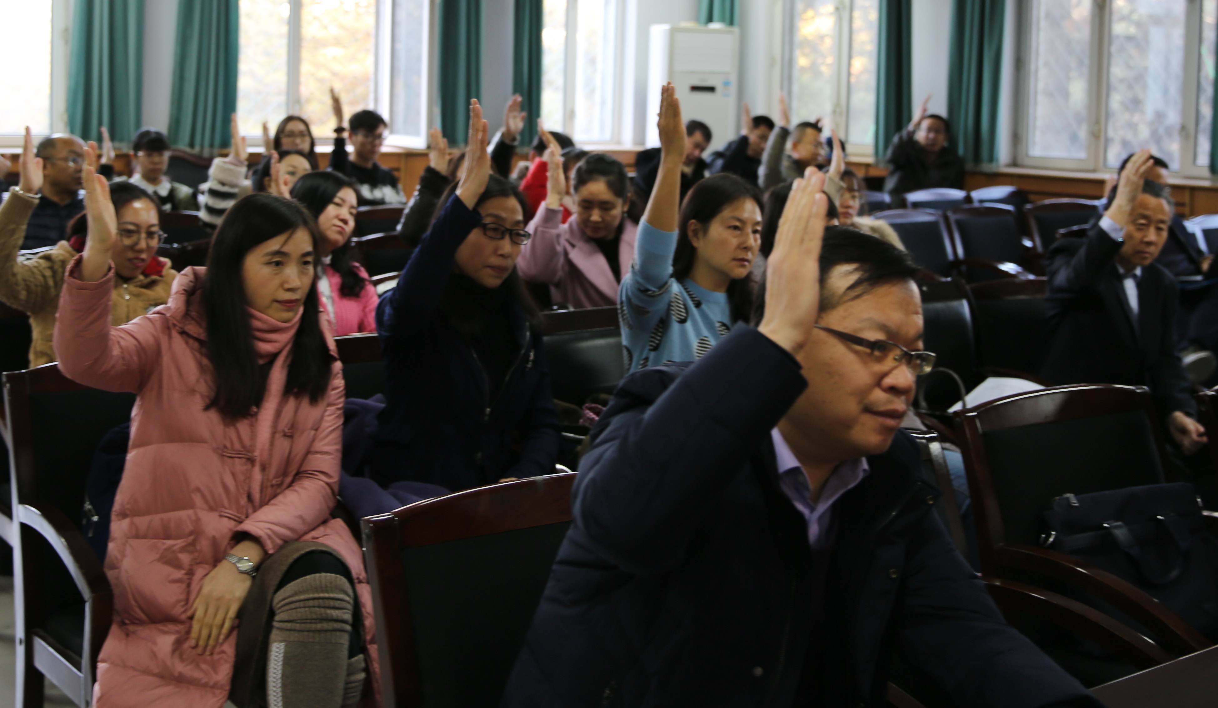 在校党委的领导下,2018年11月22日下午3:00,yL23411永利集团党总支换届选举党员大会在文史楼1号会议室隆重召开。按照党委组织部的批复,本次党总支换届选举党员大会如期召开。大会由yL23411永利集团党总支副书记副院长季建光同志主持。党总支书记扎其劳同志代表上届学院党总支委员会作工作报告。大会审议和表决通过学院党总支工作报告、选举办法、监票人和计票人。通过党员大会选举产生新一届学院党总支委员会委员扎其劳、季建光、刘官厅、包霞、李联和、毕力格图、皮建东等七位同志