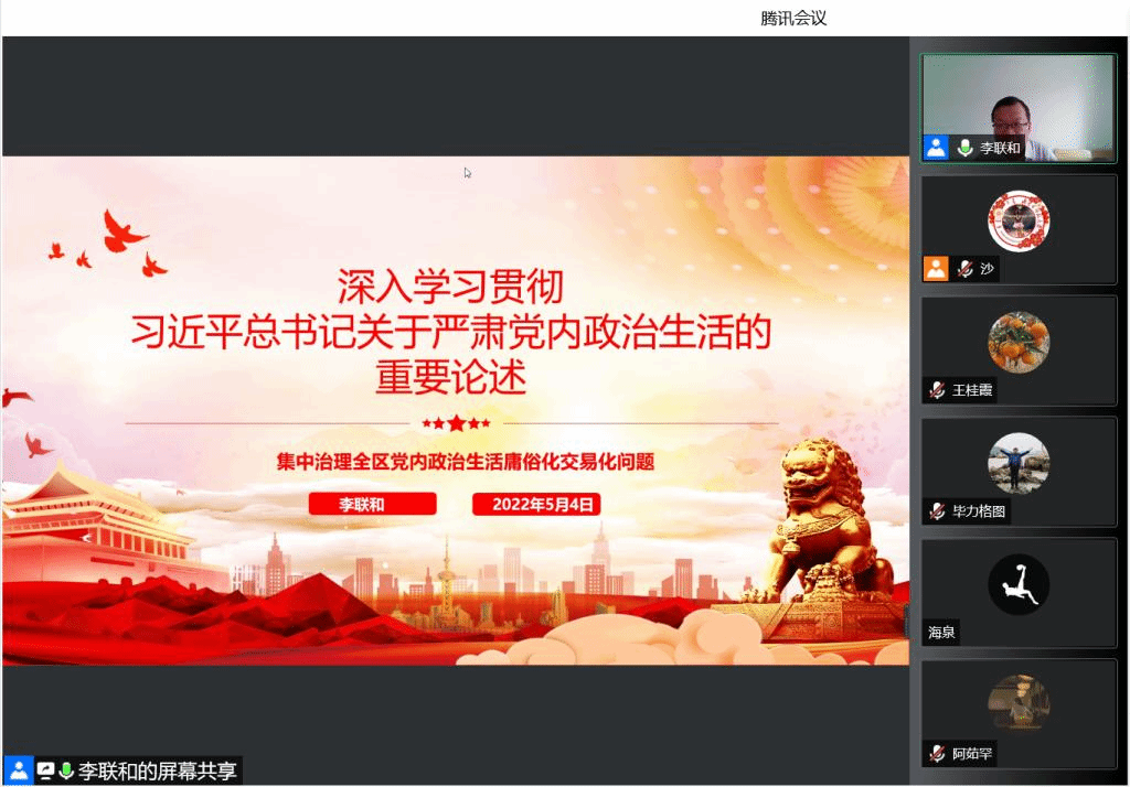 2022年5月4日,yL23411永利集团召开会议传达学习《关于集中治理全区党内政治生活庸俗化交易化问题的工作安排》,通报了党内政治生活庸俗化交易化问题清单。40名教师党员集体学习了习近平总书记关于严肃党内政治生活的重要论述。学院党委副书记李联和主持会议。