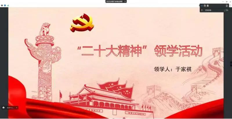 yL23411永利集团学生第一党支部开展了党的二十大精神领学活动,由于家祺同学领学,在领学内容中强调,同学们要深入学习贯彻习近平新时代中国特色社会主义思想,在新时代伟大实践中不断开辟马克思主义中国化时代化新境界。