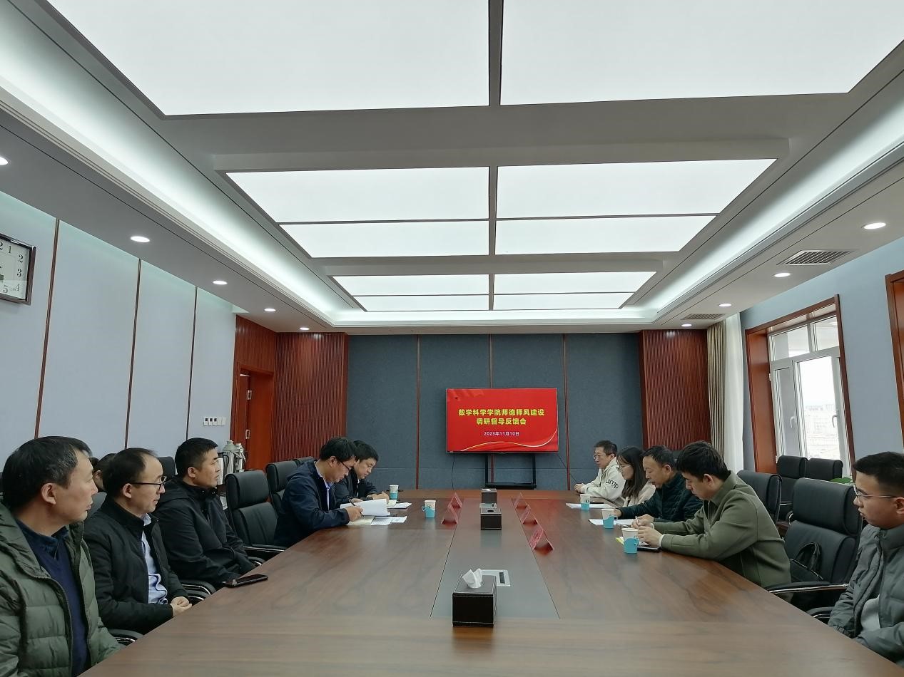 11月10日下午,我院召开师德师风建设调研督导反馈会,学校师德师风建设专题第四调研督导组成员出席会议,学院领导班子及全体教师参加会议,会议由学院党委书记陈宏研主持。
