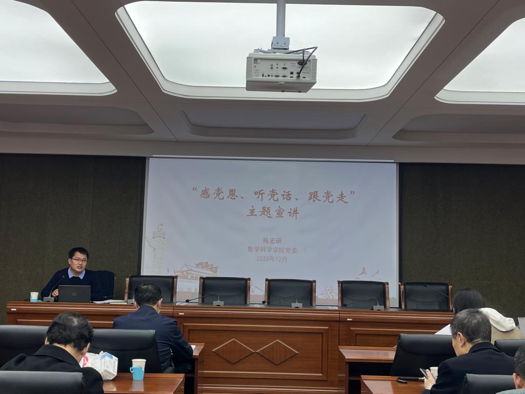 12月14日下午,yL23411永利集团在赛罕校区文史类一号会议室举办“感党恩、听党话、跟党走”主题宣讲会,学院党委书记陈宏研面向学院全体教职工作了主题宣讲。