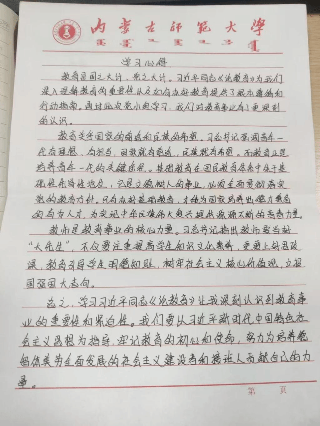 12月份,我院学生党支部各党小组围绕习近平总书记《论教育》相关篇目展开了专题学习,组织进行集中学习和研讨交流。通过专题学习习近平总书记关于教育的重要论述,引导党员学生在思想上、行动上更加紧密地团结在党的周围,大力弘扬践行教育家精神,积极投身建设教育强国的伟大实践。