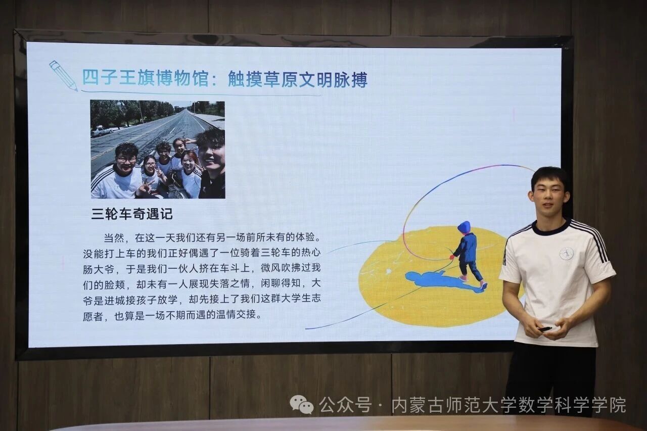 志愿者们依次上台,用鲜活的话语、真挚的情感,讲述实践中的点滴见闻与所思所感。他们分享了从初到服务地的新奇与忐忑,到投身教育帮扶工作时的执着坚守;从组织各类劳动实践活动的辛勤付出,到个人能力素质的全面提升,每一处细节都饱含着青春的热血与担当,充分展现出数学学子“严谨、务实、团结,奋进”的优秀品质。