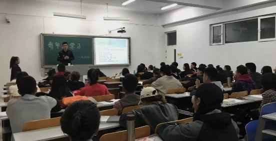 活动过程中,我院团总支书记皮建东老师,学生思想政治辅导员李帅老师、刘沙沙老师来到各团支部,与支部成员针对《中国共产主义青年团章程》的具体内容进行交流。