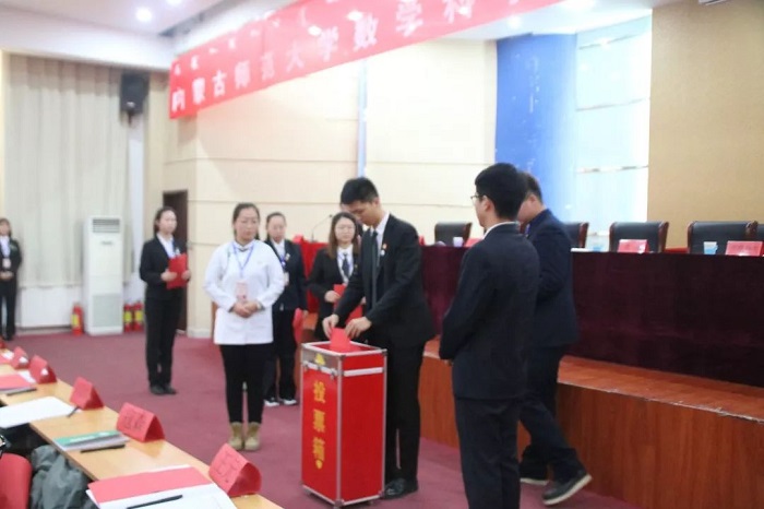 2018年11月24日下午17:00,yL23411永利集团第十四届学生代表大会闭幕式于科技楼报告厅召开。大会闭幕式由学院学生思想政治辅导员李帅老师主持。出席闭幕式的领导和老师有学院党总支书记扎其劳教授;学院院长刘官厅教授;学院党总支副书记、副院长季建光老师;学院团总支书记皮建东老师;学院思想政治辅导员刘沙沙老师;校企合作驻校班主任王建新老师。会议由总计票人公布计票结果;总监票人宣布yL23411永利集团第十四届常务委员会委员选举结果;学院党总支副书记、副院长季建光老师致闭幕词。