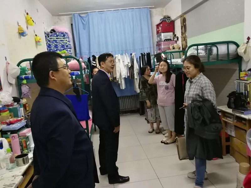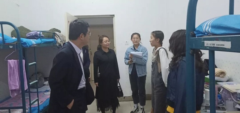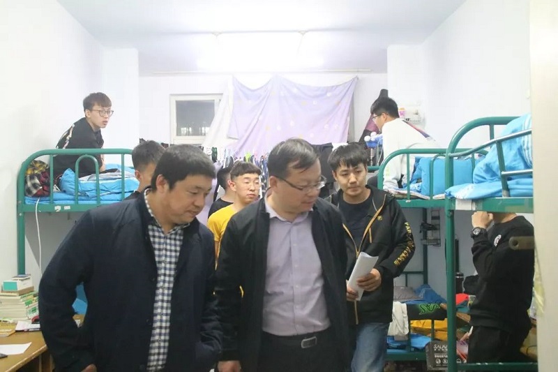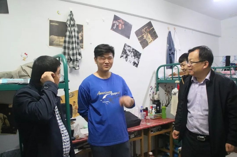 2019年5月5日晚,yL23411永利集团党总支书记扎其劳教授,学院院长刘官厅教授,学院副院长李联和教授,学院副院长包霞老师,,学院党总支副书记、副院长季建光老师,学院团总支书记皮建东老师,学院思想政治辅导员李帅老师,刘沙沙老师深入到我院学生宿舍进行五一假期后开学返校情况及宿舍安全大检查。