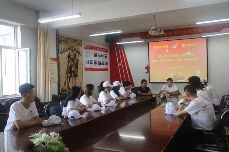 皮建东老师为大家详细介绍了本次实践活动所到地点、环境及活动目的。季建光老师,李帅老师也分别强调了此次“三下乡”的安全问题及各种注意事项,并举行了授旗仪式。