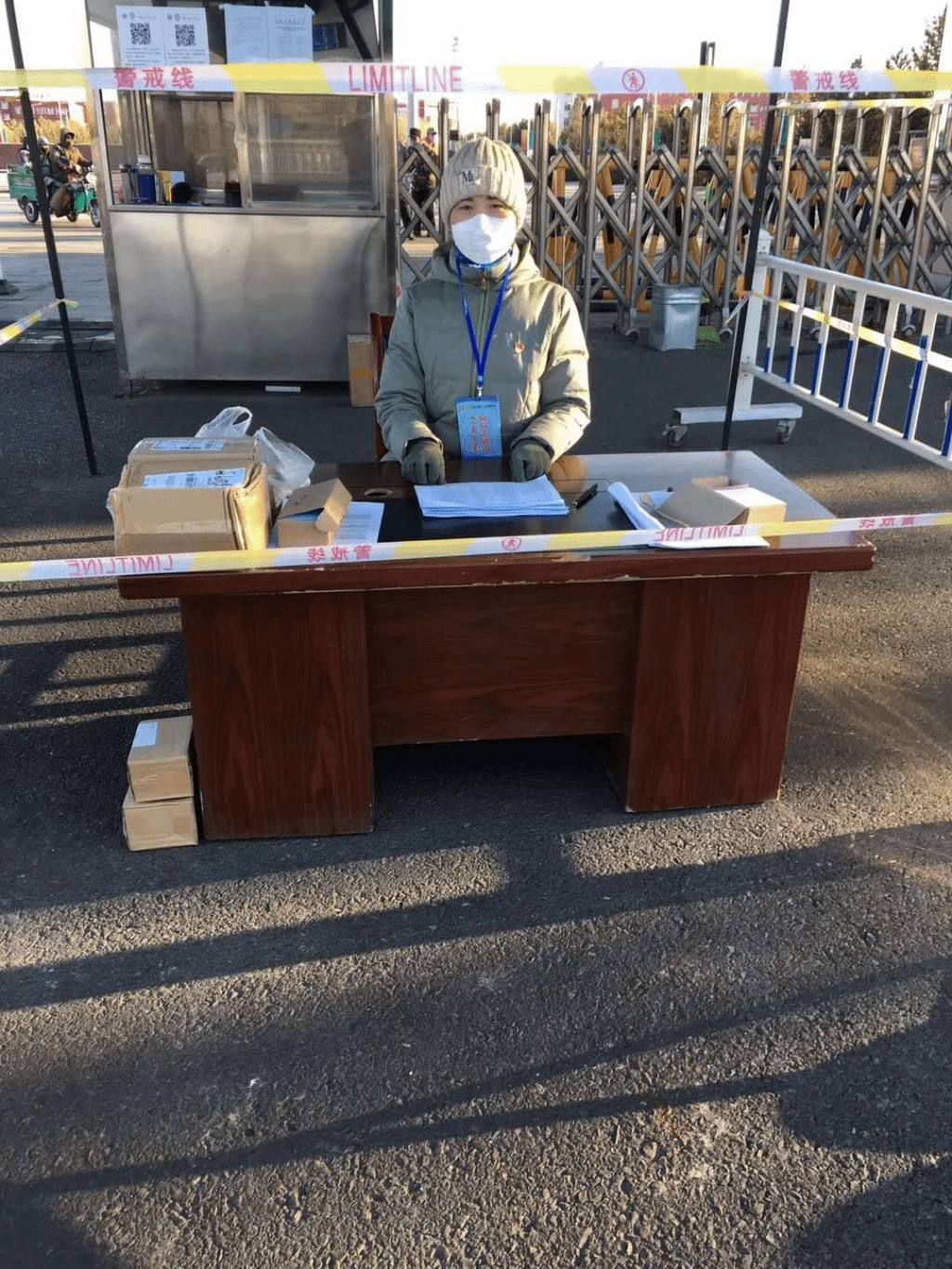 佩戴好工作证,做好个人防护,在盛乐校区北门执勤点,协助保安登记出入校园人员的信息,为物业、后勤、幼儿园工作人员及家属区居住的非师大工作人员发放、登记通行证,收发在校人员的快递信件……即使骄阳一片好,仍有朔风侵骨寒,双手被冻红、冻僵,在值班过程中,李春兰老师一定面临着更多我们无法了解到的困难,但她依然选择了坚持,勇担先锋,敢打头阵,这是责任,是党员本色!