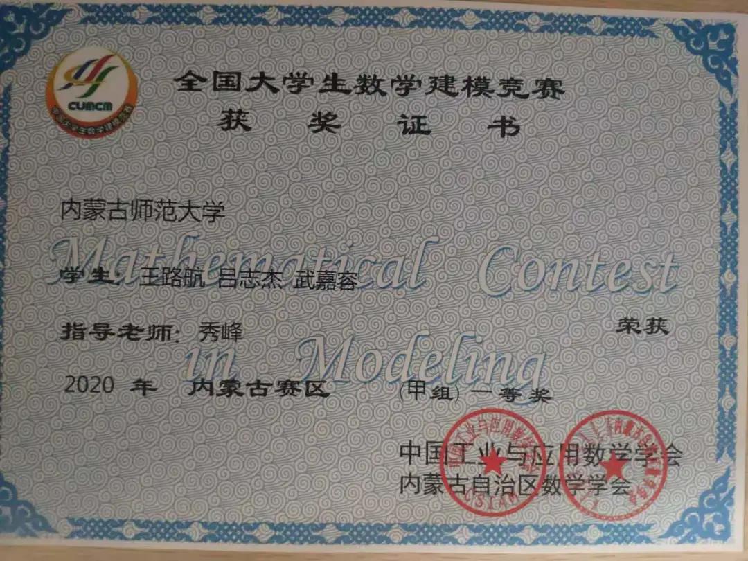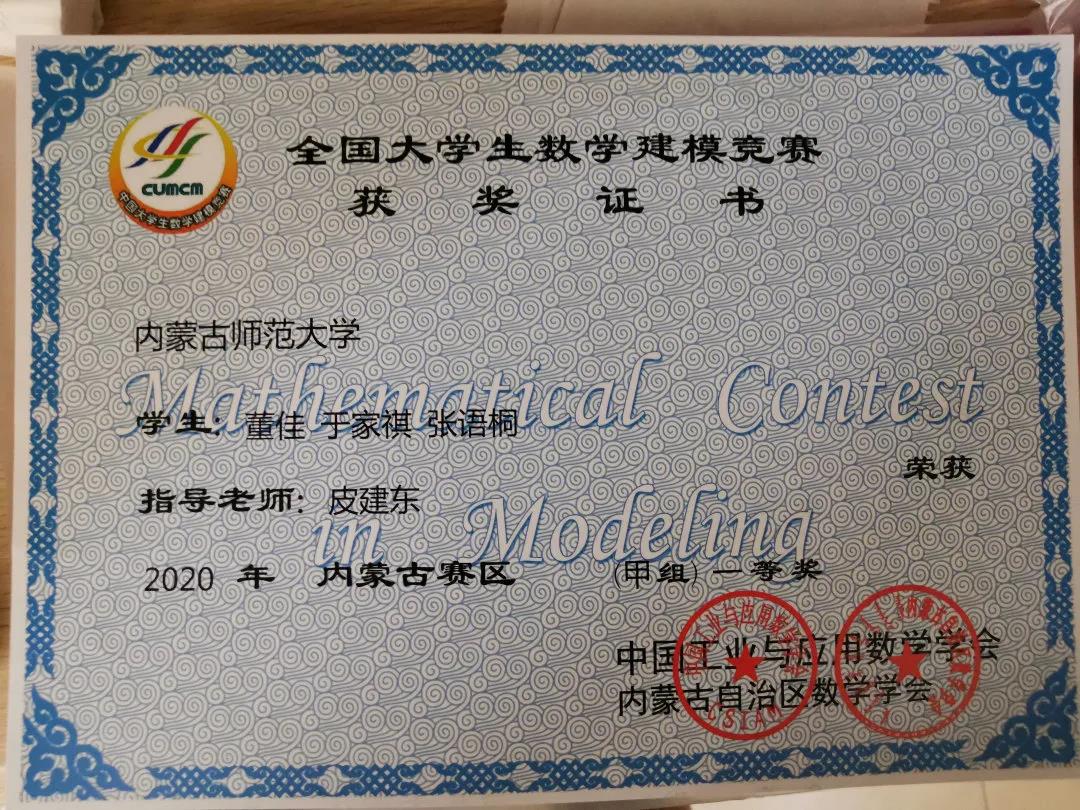 数科学子在各类数学建模大赛中取得佳绩