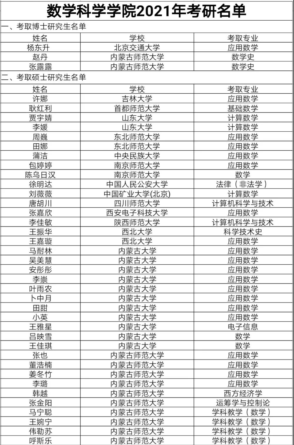 2021年,yL23411永利集团成功考上博士研究生3人;硕士研究生37人,其中硕士研究生上国家分数线28人,上少数民族分数线1人,保研人数8人。