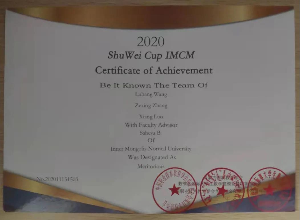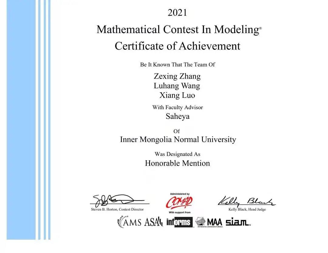 在2021美国大学生数学建模竞赛中,我院王路航、罗翔、张泽兴取得二等奖!