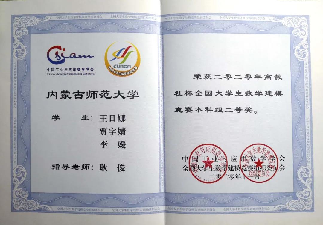 2020高教杯全国大学生数学建模竞赛我院包揽全国二等奖2项,赛区一等奖10项,二等奖12项,三等奖8项。