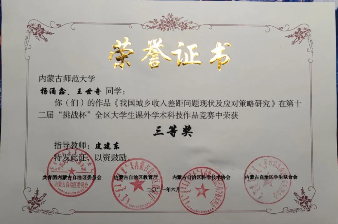 第十二届“挑战杯”全区大学生课外学术科技作品竞赛,我院同学取得二等奖一项,三等奖两项。