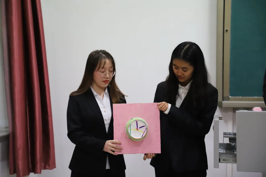 选手们依次上台向评委老师们介绍自己的实物教具作品,并进行详细的说明讲解。