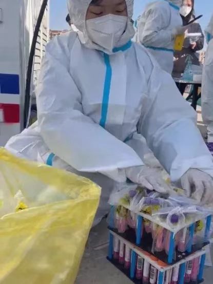 六天的志愿者生活带给了我很多,工作在离大量样本最近的第一线,我深深地感受到了医护人员的辛苦。因为送样的原因,检测员们一直在方舱里工作到凌晨四点,我们在外面剥标本运输袋的人也干到了凌晨,每个人都穿着厚厚的防护服,虽然有时候累到直不起腰来,但没有一个人敢懈怠,大家都在用最快的速度完成手中的工作,一边期待全员阴性的结果。最无私的除了医护人员,还有镇里的出租车司机们,他们穿上防护服,运送来自各地的标本,有序排队直到车中的标本顺利交接到工作人员手里才肯离去。这场对病毒的战役中的任何一环的任何一个人都是伟大的!我们也期待疫情能够早日结束!
