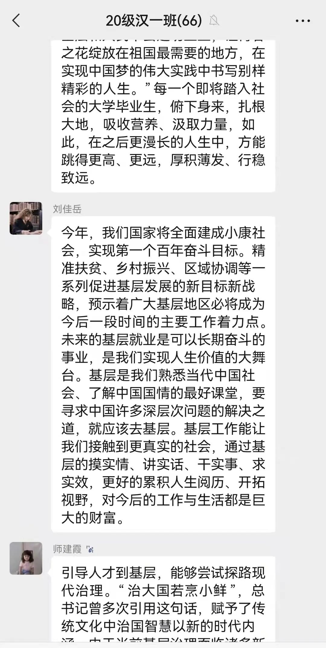 高校毕业生基层就业是其施展才华、成长成才的重要渠道,也是全面推进乡村振兴的重要助力,希望同学们积极投身于基层就业创业,为家乡美丽建设贡献力量!