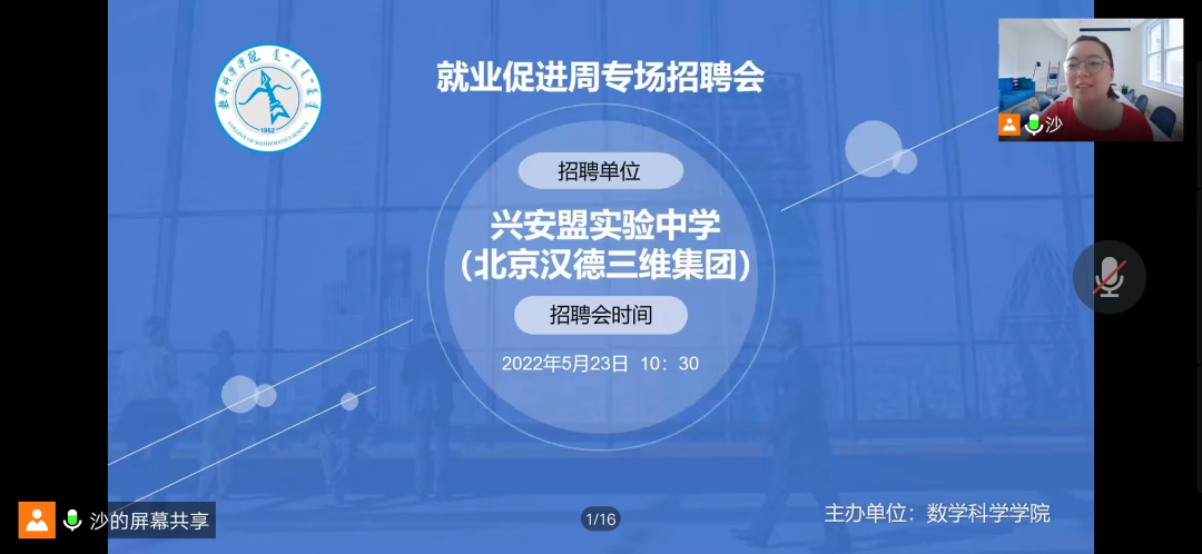 为更好的推进《yL23411永利2022届毕业生就业促进周系列活动方案》的工作要求,全力促进毕业生尽早就业、顺利择业,5月23日上午10:30,学院举办了“就业促进周”网络专场招聘会,此次招聘专场是兴安盟实验中学,实验中学校长解杰、副校长李郭瑞、吴老师以及学院党委副书记、副院长季建光、学生工作与就业办公室副主任刘沙沙、辅导员萨如拉出席此次招聘会议,我院2022届数学与应用数学专业的60多名毕业生参加本次招聘会。