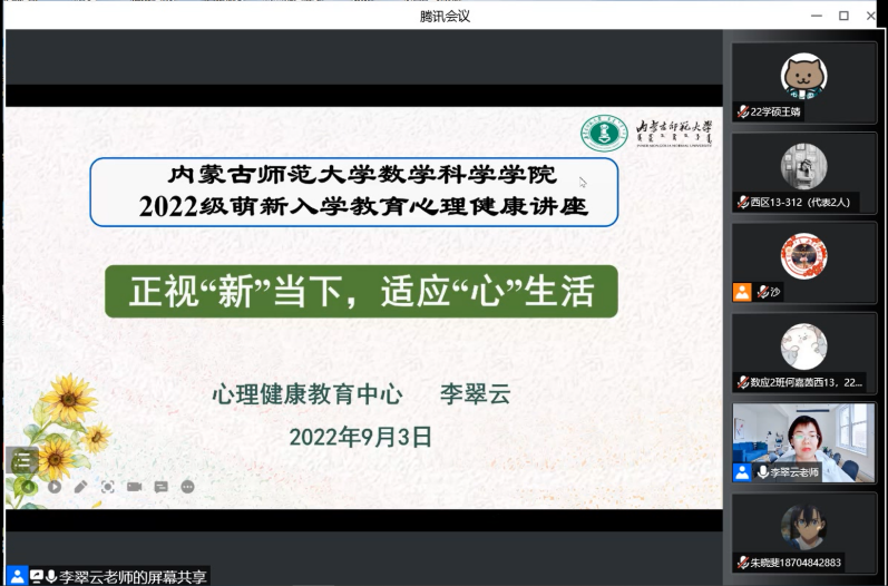 2022年9月3日下午19:00—20:30,我院22级研究生新生参加了由李翠云老师主讲的心理健康教育讲座。