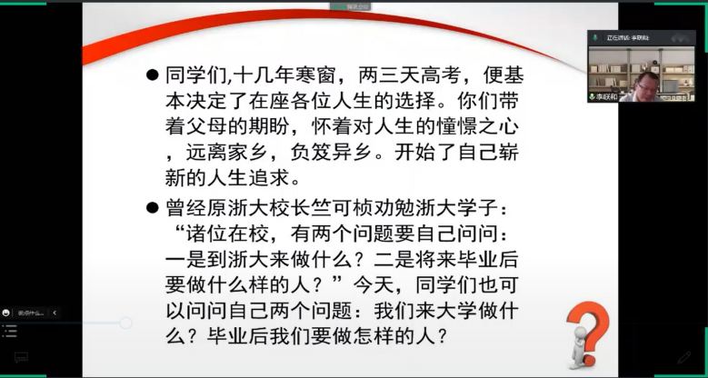 2022年9月3日上午9:00—10:30,学院党委书记李联和老师为新生做了“思想政治教育”讲座。希望新生们能把本科期间养成的优良作风坚持下去,努力获得学术上的最大收获,积极培养创新性思维,并将实现个人理想与勇于担当社会责任联系起来,愿学院全体研究生能够拥有灿烂美好的明天!