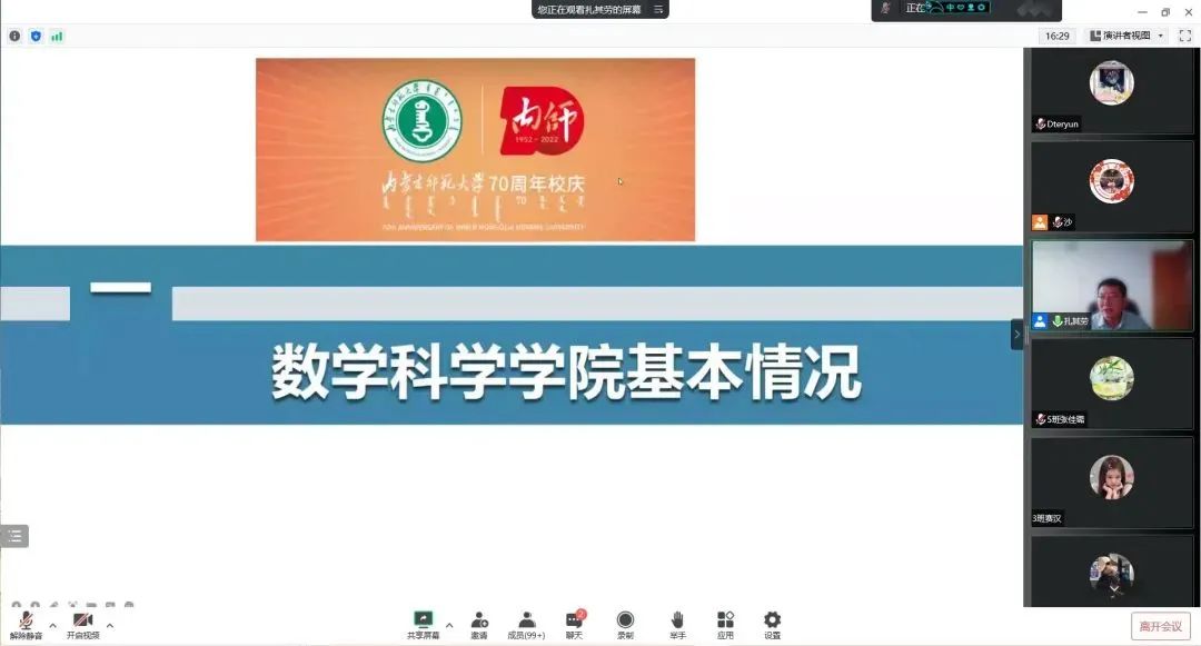 2022年9月3日上午10:30—12:00,学院院长扎其劳老师从yL23411永利集团基本情况和数学学科发展概况两方面介绍了学院发展历程,向研究生新生开展入学教育讲座,并对研究生新生寄予厚望:我们每一个人都是逐梦人、追梦人和圆梦人;只要我们勠力同心,奋发有为,真抓实干,中华民族伟大复兴的中国梦就一定会实现!