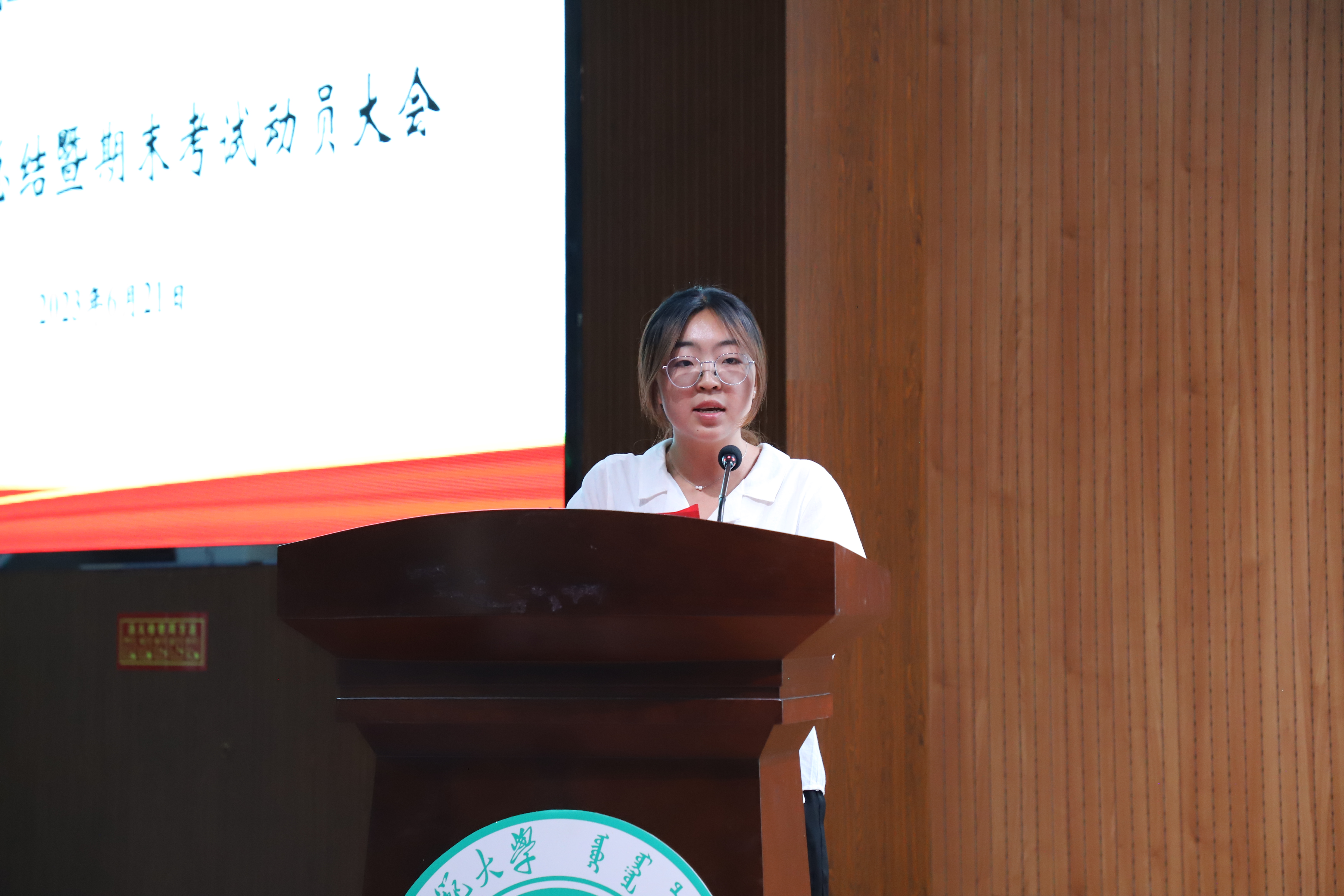 2023年6月21日晚七点,yL23411永利集团于图书馆二楼报告厅举行了我院2022—2023学年第二学期学生工作总结暨期末考试动员大会。出席本次会议的有学院院长扎其劳教授,学院党委副书记、副院长季建光老师,学院副院长包霞老师,团总支书记皮建东老师,学生工作辅导员萨如拉老师,学生工作辅导员阿茹罕老师,21级汉一班班主任李春兰老师,21级蒙班班主任乌日柴胡老师,21级汉四班班主任高兴华老师,21级信息班班主任赵学慧老师,22级一班班主任李璐老师,22级二班班主任郑佳璇老师,22级三班班主任苏日古嘎老师,22级四班班主任朱建波老师,22级五班班主任莘智老师,本次会议由学生工作与就业办公室副主任刘沙沙老师主持。