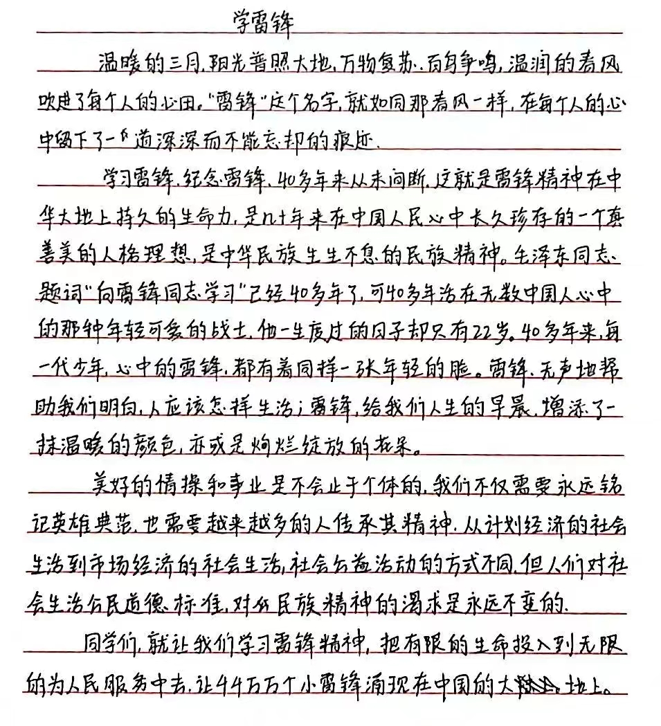 为进一步学习和弘扬雷锋精神,形成“人人学雷锋、时时有雷锋、处处见雷锋”的良好氛围,扎实有效推进学生思想道德教育,3月5日,yL23411永利集团举办学雷锋纪念日主题征文活动。