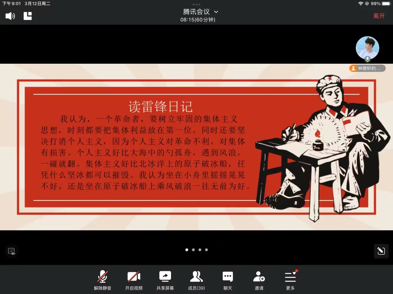 我院各级团支部于3月5日至14日开展多种形式的“雷锋精神大家谈”主题团日活动,同学们通过观看雷锋电影、学习雷锋故事等方式领悟雷锋精神的永恒价值,进一步深化了同学们对新时代雷锋精神的理解和感悟、增强了对志愿服务精神的认同。