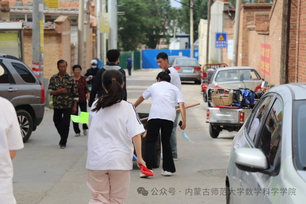 团队同步推进多元实践,实现“服务一方、带动一片”的良好成效。7月10-11日,数学院暑期“三下乡”社会实践团在四子王旗开展专项调研,通过问卷聚焦学生职业规划与教育需求,同步宣讲公费定向师范生政策。公费师范生政策宣讲走进四子王旗一中,志愿者们借助精心制作的PPT,全方位呈现学院的综合办学实力,详细解读公费师范生政策要点,为心怀教育梦想的学生指明前行方向,助力他们明晰未来职业发展路径,为自治区基础教育人才储备注入动力。此外,志愿者们深入社区,一对一为家长解读报考流程、培养体系及就业保障,结合案例解答专业适配、职业发展等关切,打通政策落地“最后一公里”,为家长科学规划子女学业生涯提供了极具价值的参考依据。