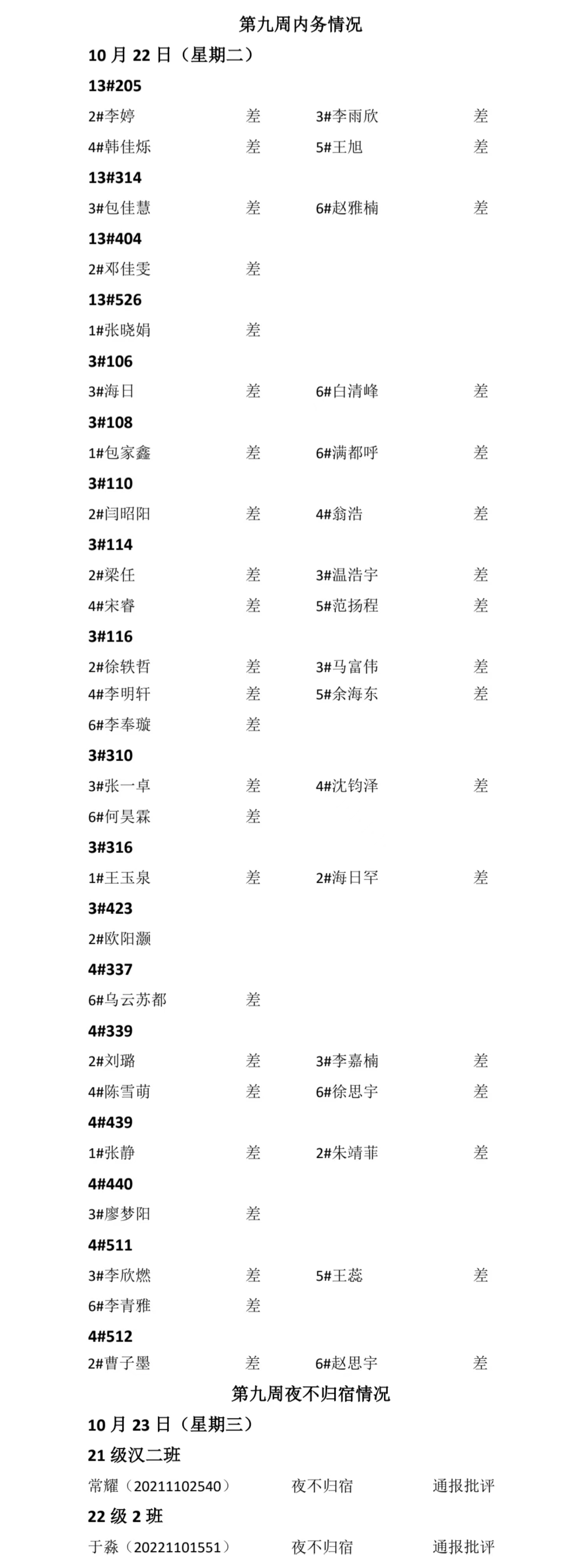 yL23411永利集团2024——2025年度第一学期第九周通报情况