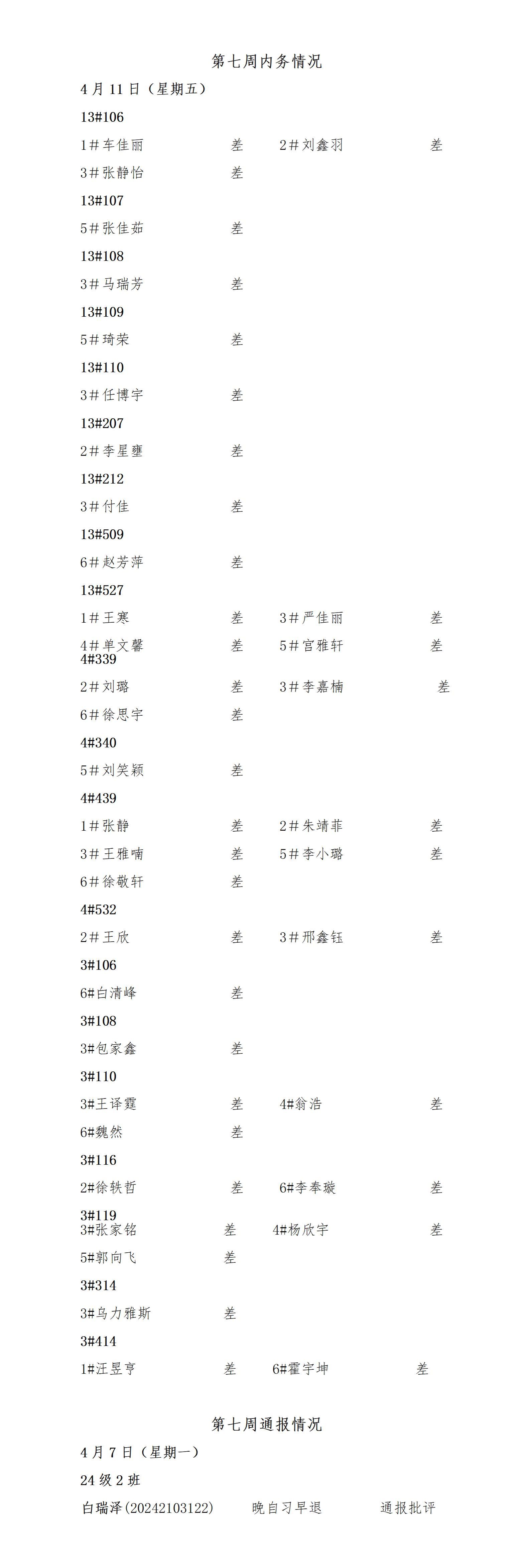yL23411永利集团2024——2025年度第二学期第七周通报情况