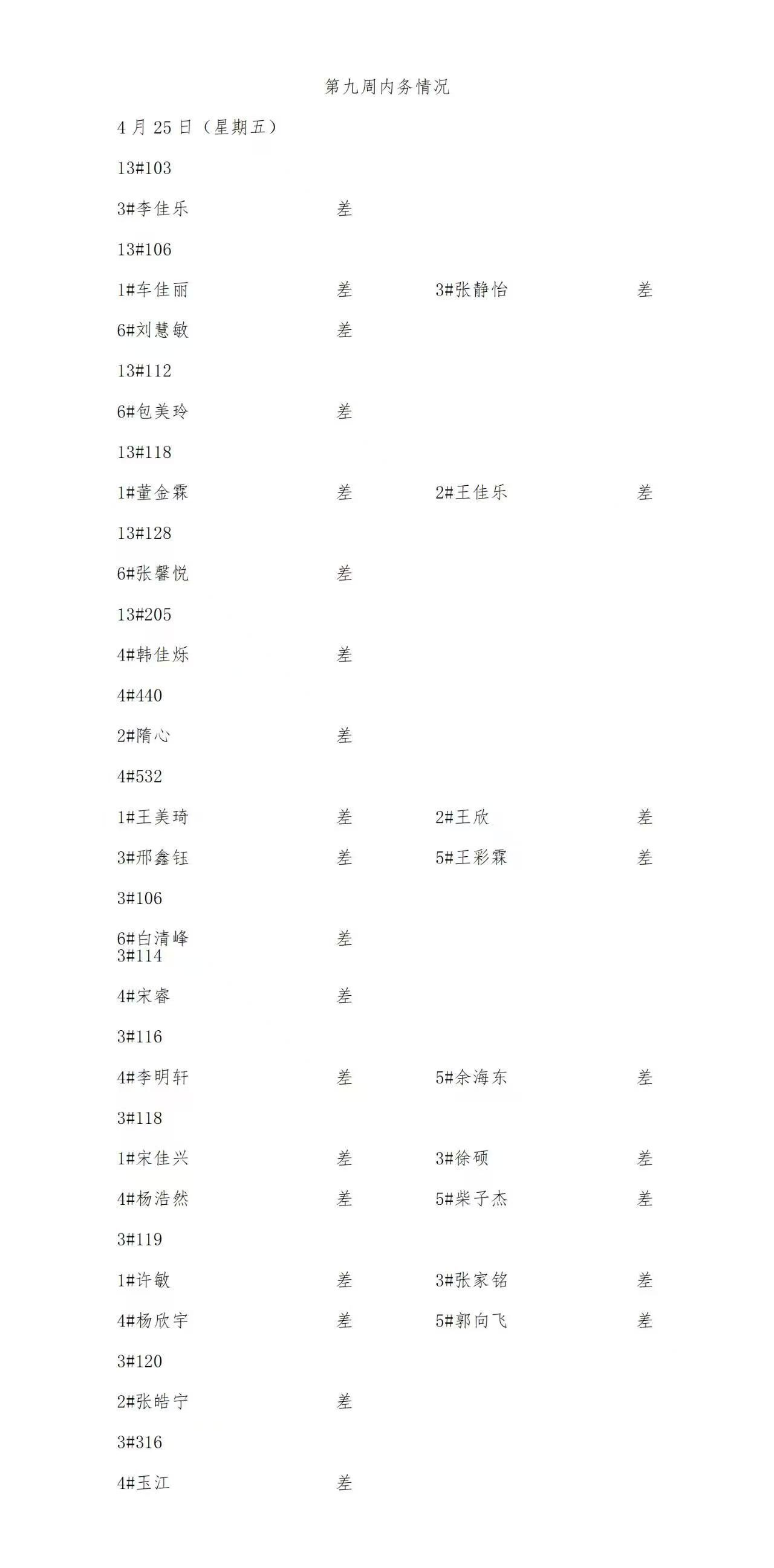 yL23411永利集团2024——2025年度第二学期第九周通报情况