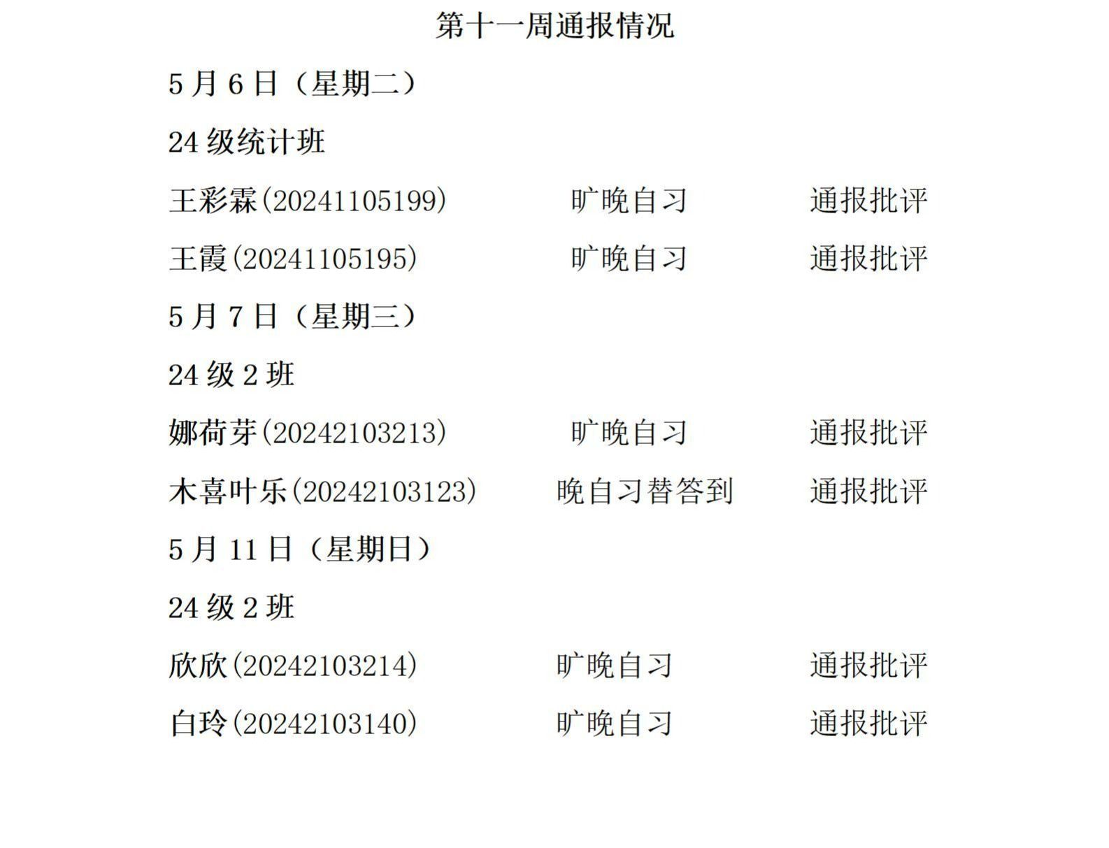 yL23411永利集团2024——2025年度第二学期第十一周通报情况
