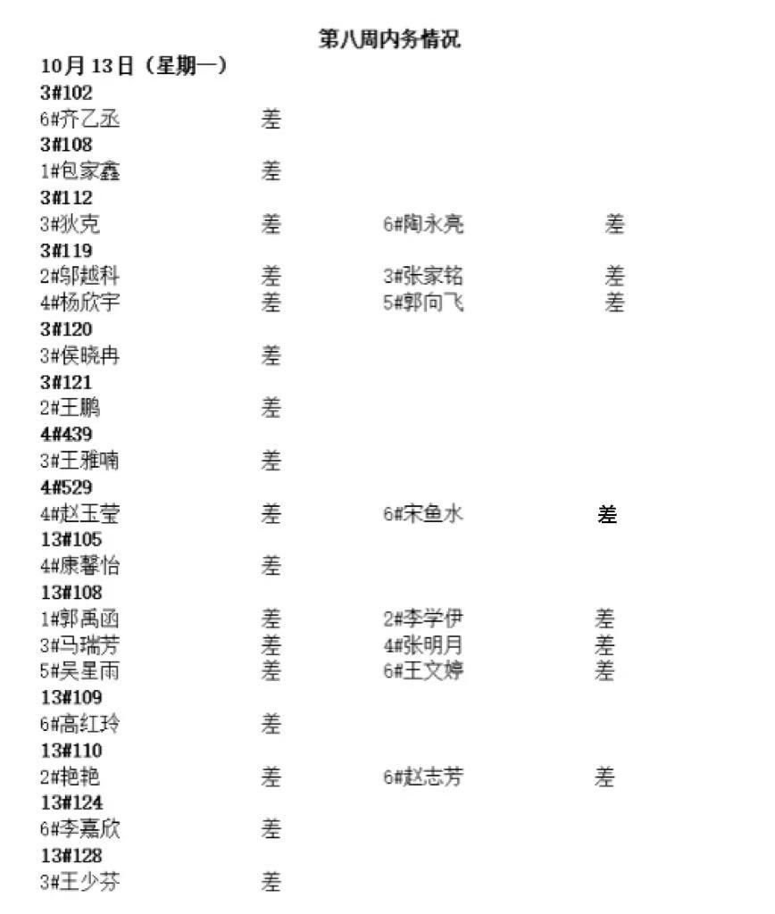 yL23411永利集团2025——2026年度第一学期第八周内务情况
