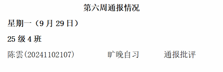 yL23411永利集团2025——2026年度第一学期第六周通报情况
