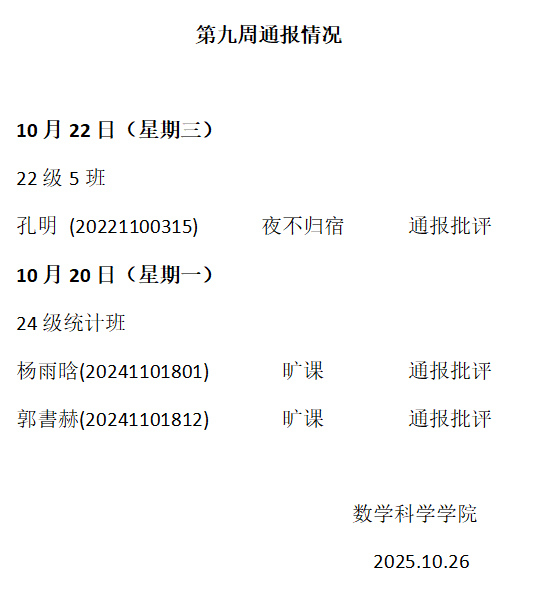 yL23411永利集团2025——2026年度第一学期第九周通报情况