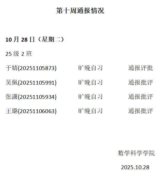 yL23411永利集团2025——2026年度第一学期第十周通报情况