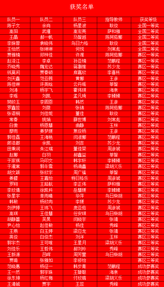 12月10日,全国大学生数学建模竞赛国家组委会和内蒙古赛区组委会公布了2021年“高教社杯”全国大学生数学建模竞赛内蒙古赛区获奖名单。今年,共有来自中国及美国、英国、马来西亚的1566所院校/校区、49529队(本科45075队、专科4454队)、14万余人报名参加了比赛。我校获得全自治区唯一的一项国家一等奖,并获国家二等奖4项(自治区共15项,我校占比最高),内蒙古自治区一等奖6项、二等奖12项、三等奖18项。此次竞赛中,我校报名参赛的队伍有49支,其中41支队伍获得自治区三等奖以上奖项,获奖率高达84%。