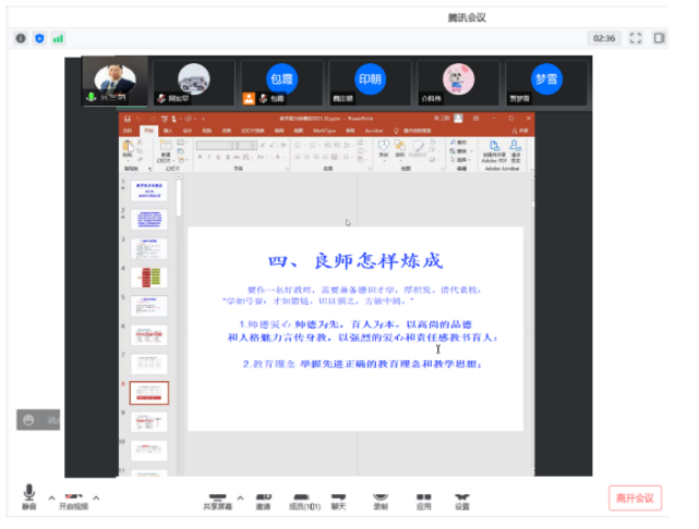 2022年4月20日19:00—21:00yL23411永利集团在线开展“国家一流专业建设、虚拟教研室建设、内蒙古应用数学中心”系列讲座。本次特邀请国家教学名师、西安电子科技大学刘三阳教授作主题为“教学能力纵横谈”的报告。报告由包霞副院长主持,院长扎其劳教授、党委书记李联和教授、副书记季建光老师及学院全体教师和慕名而来的其他院校部分教师聆听了本次报告。