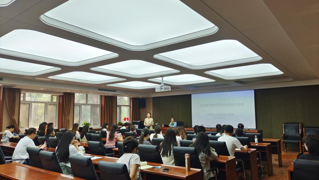 朱文芳教授用风趣幽默的语言,结合具体实例,从数学教育研究生选题原则、以往研究生论文写作中存在的问题、ChatGPT/AIGC对未来数学教育研究的影响、未来数学教育研究要关注的问题等方面进行了详细地讲解,并耐心回答了学生们提出的问题,使大家受益匪浅。