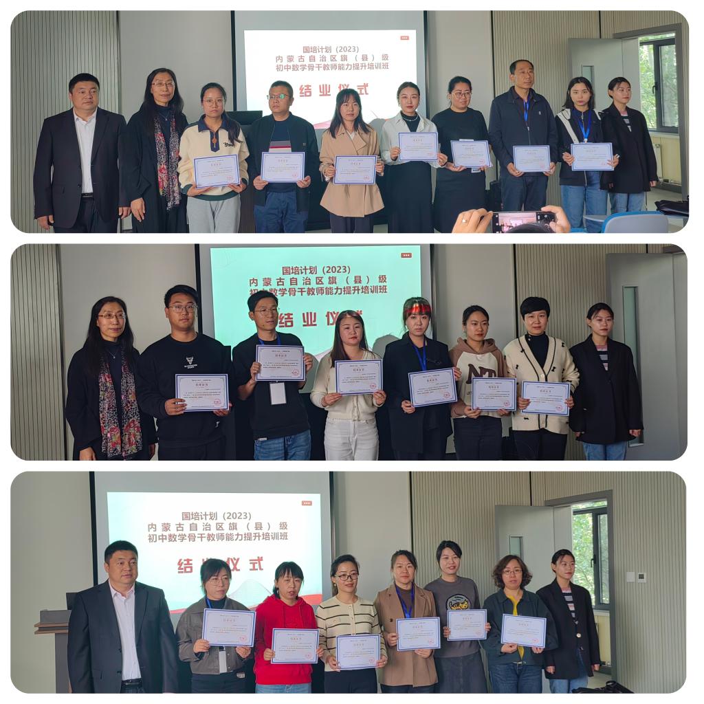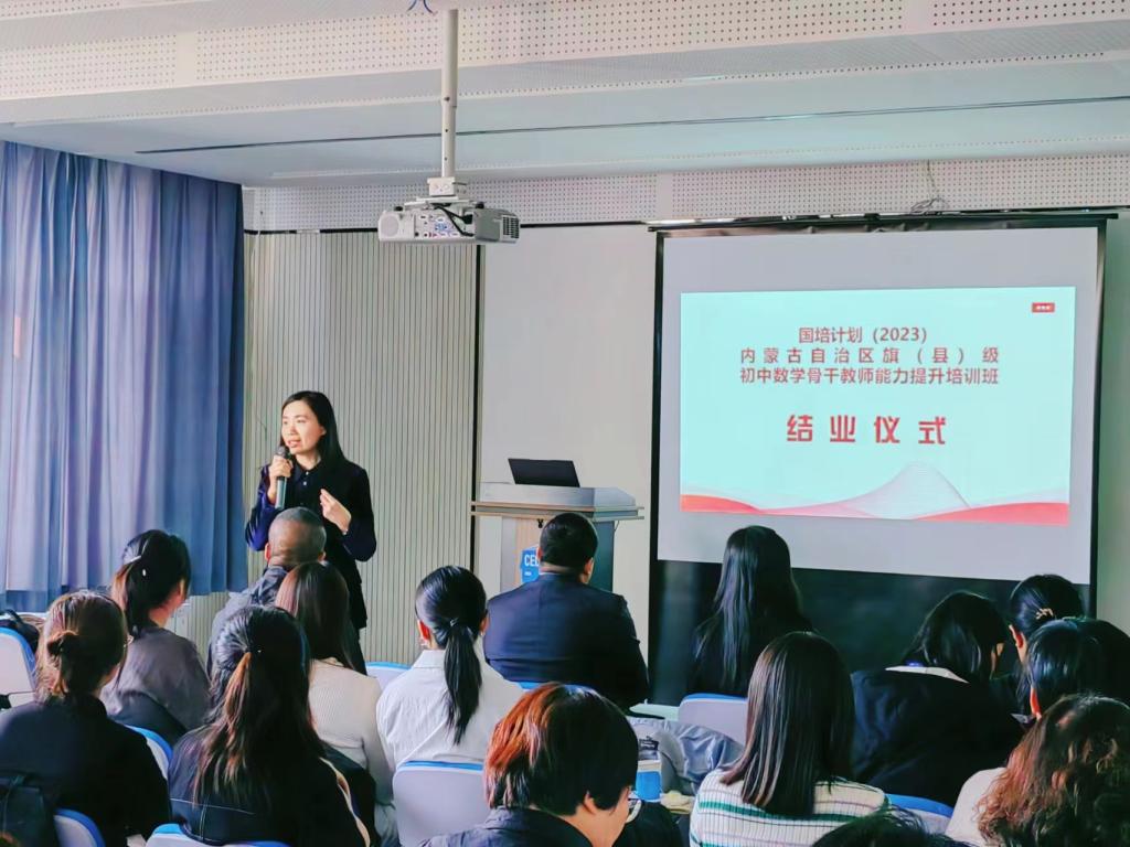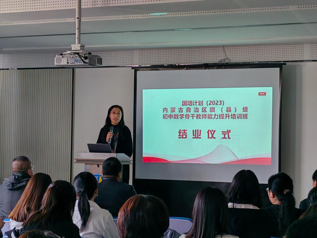 10 月 23 日下午 “国培计划(2023)——内蒙古自治区旗(县)级初中数学骨干教师能力提升”培训在yL23411永利圆满落幕。本次培训由yL23411永利继续教育学院主办,yL23411永利集团承办,为期14天,含集中研修7天和跟岗实践7天,50名学员来自全区各盟市选派来的旗(县)级初中数学骨干教师。继续教育学院培训部薛佳琦老师、yL23411永利集团副书记季建光老师、培训项目负责人数学科学院副院长包霞老师、培训项目对接人数学科学院李春兰老师、培训班班主任及相关工作人员出席了结业典礼。李春兰老师主持了结业仪式。