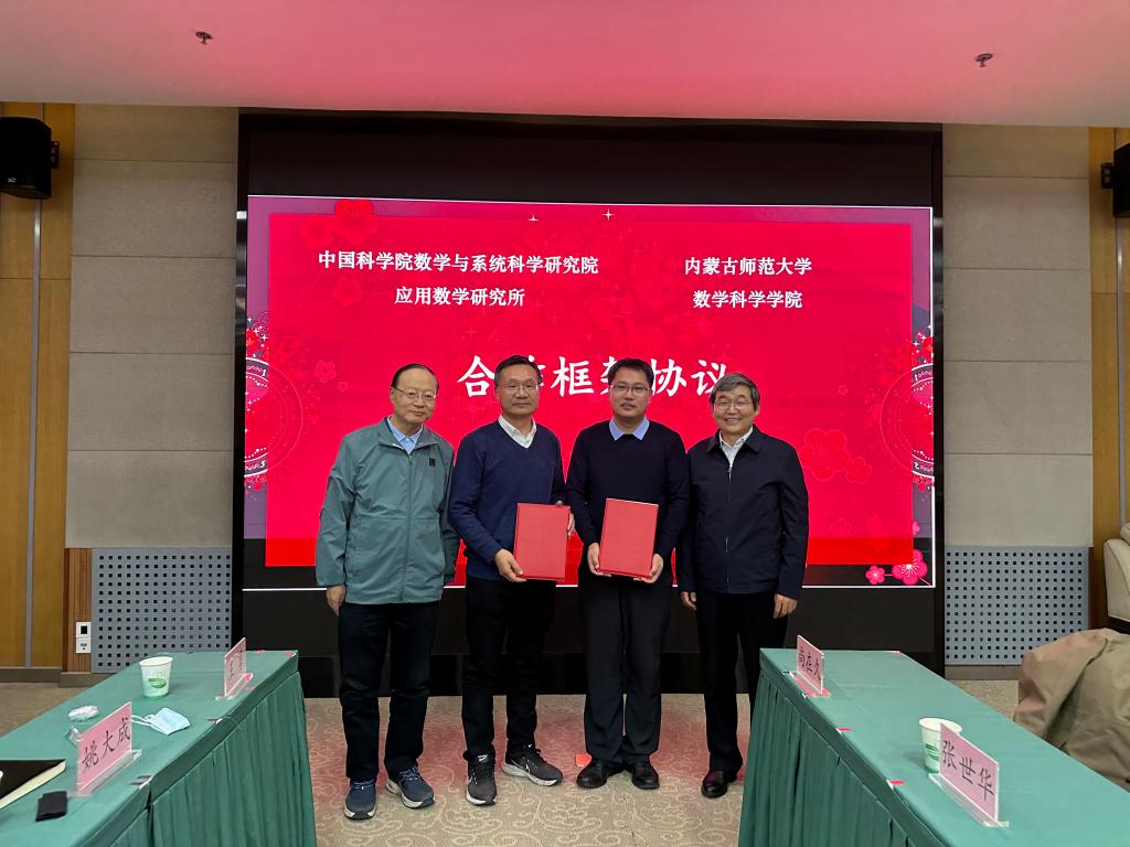 11月25日,我院与中国科学院数学与系统科学研究院应用数学研究所在中国科学院联合召开应用数学学术交流研讨会并签署合作框架协议。中国科学院马志明院士、严加安院士、中国科学院前副院长巩馥洲研究员、数学研究所所长尚在久研究员、应用数学研究所所长骆顺龙研究员、应用数学研究所副所长王益研究员等40余名专家学者参加了本次会议。内蒙古自治区应用数学中心主任阿拉坦仓教授、yL23411永利集团党委书记陈宏研、副院长包霞等教师参加了本次会议。学术交流研讨会由骆顺龙所长和包霞副院长主持。