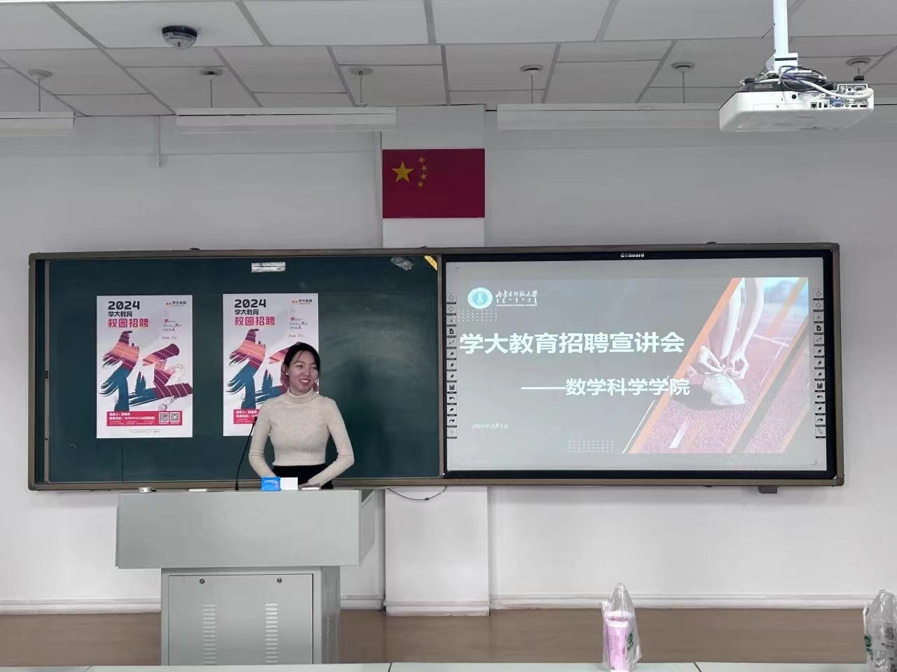 为推动毕业生实现更充分更高质量的就业,让企业和毕业生之间建立双向选择平台,实现“零距离”就业。3月5日下午,yL23411永利集团联合学大教育集团于盛乐校区行知楼320教室举办专场招聘宣讲会,本次会议邀请学大教育张瑾萱老师主讲,学院负责就业的老师以及20级部分同学参加。