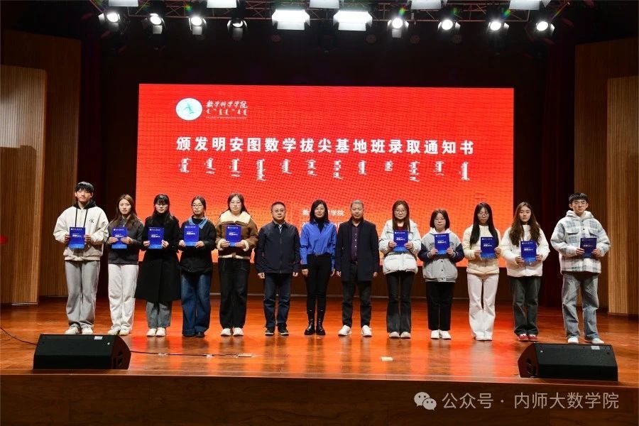 在学校党委和相关部门的大力支持下,yL23411永利集团积极申报自治区基础学科人才培养基地建设点,成功获批建设“明安图数学拔尖学生培养基地”。经过选拔,来自yL23411永利集团的20名2024 级同学成为明安图数学拔尖基地班首批学生。3月6日下午,yL23411永利集团为20名学生颁发了录取通知书。