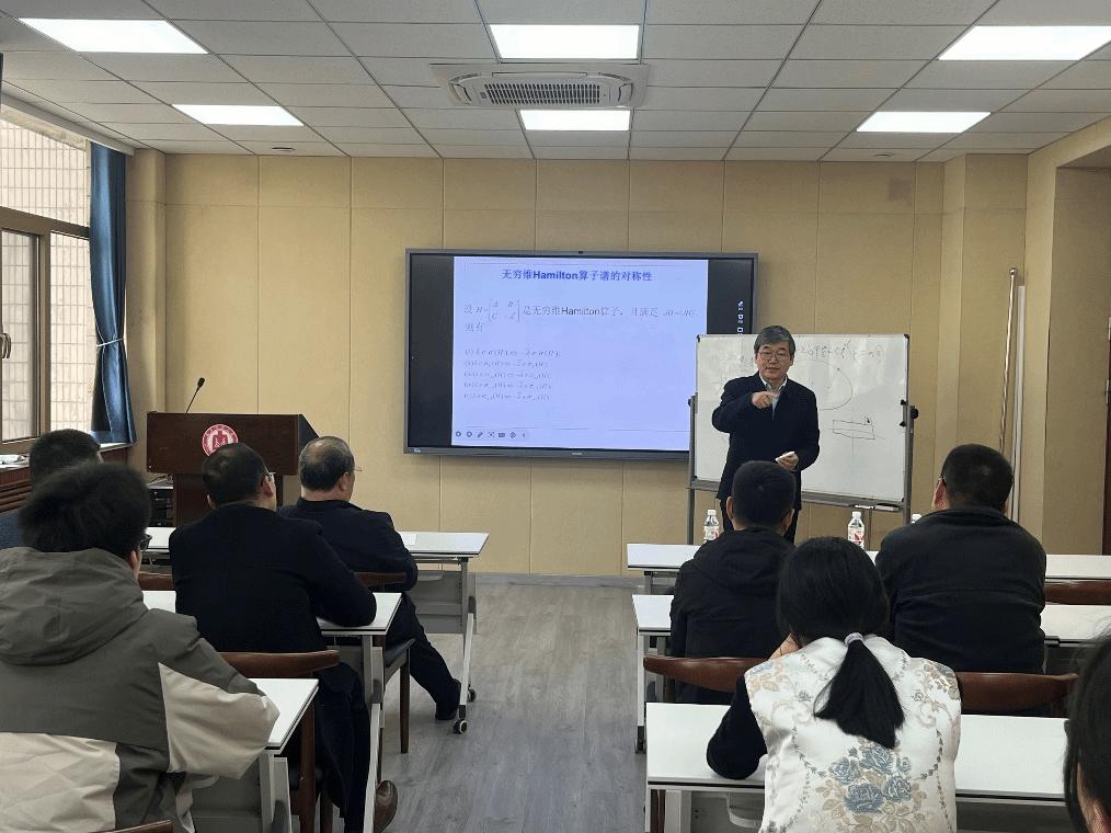 2025年3月28日,无穷维哈密顿系统及其算法应用教育部重点实验室主任阿拉坦仓教授应曲阜师范大学yL23411永利集团邀请,作题为“无穷维Hamilton算子的谱对称性及其完备性理论”的学术报告。