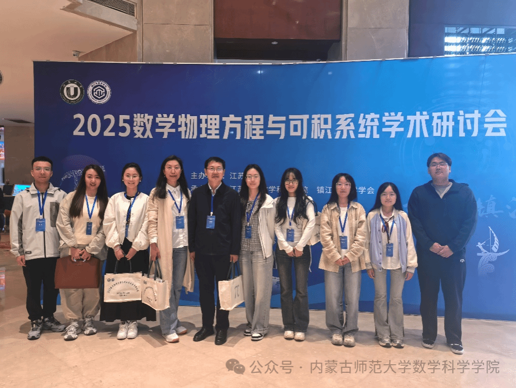 5月9日-12日,2025数学物理方程与可积系统学术研讨会在江苏省镇江市召开。本次会议由江苏大学主办,江苏大学yL23411永利集团、镇江市数学会承办。来自国内外100余所高校、近220名代表参加会议。我院扎其劳老师和包霞老师应邀带队及博士研究生乌日乐、王小慧、赵一杰,硕士研究生常春、王丽如等参会,并做分会场学术报告。