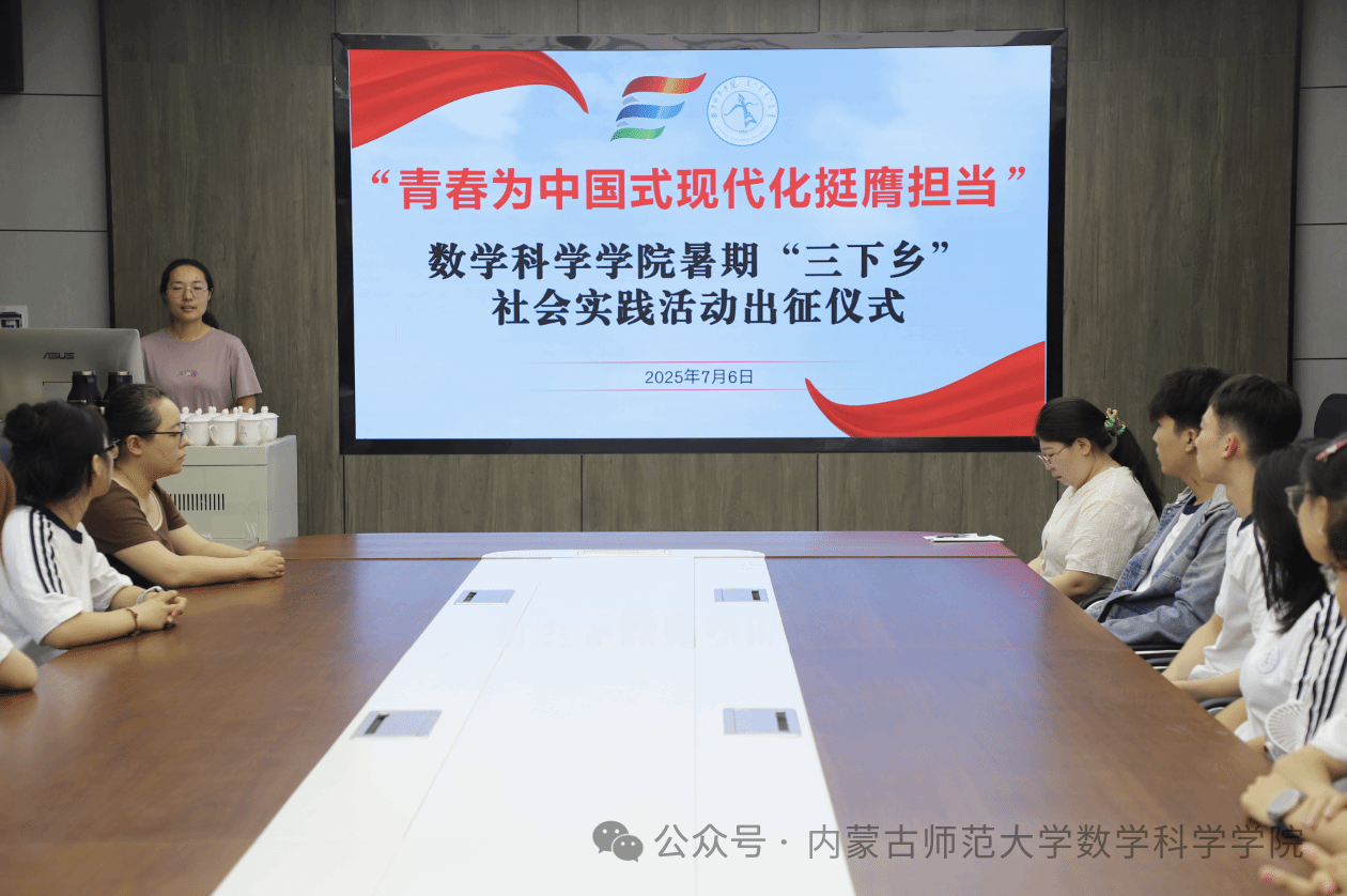 7月6日上午,yL23411永利集团2025年暑期“三下乡”社会实践活动出征仪式在学院楼会议室举行。团队带队教师刘沙沙、阿茹罕、萨如拉出席仪式,团队16名志愿者参加出征仪式。