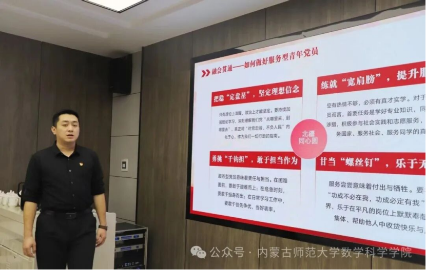 本次党课是yL23411永利集团党委“数映内蒙古”党建品牌系列活动之一。学院党委始终坚持以数学为基,教学立院,科研强院,映射建设内蒙古“两个屏障”、“两个基地”、“一个桥头堡”的五大任务,构建内师数学赋能北疆发展的创新范式。yL23411永利集团学生第二党支部将坚持“数绘同心圆”,以党为圆心、以数学为半径,在祖国北疆绘就青年学子同心向党的青春之圆,引导广大学生党员在理论学习与社会实践中坚定信仰、增长才干、服务社会。